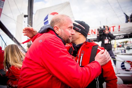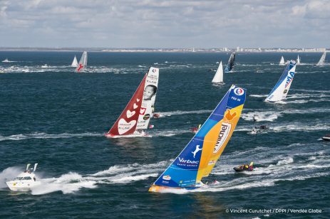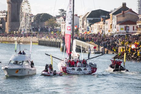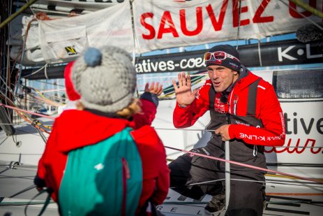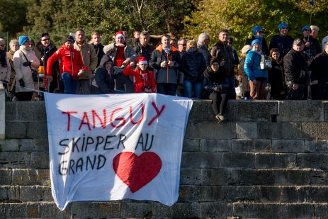 Dès hier matin, Tanguy nous a tous impressionnés par sa sérénité en arrivant au bateau. L’équipe tentait, avec plus ou moins de facilité, de maîtriser ses émotions. Car si Tanguy partait pour son second Vendée Globe, pour nous tous, c’était une première, et c’est très très impressionnant ce chenal… Lui était fort, serein, même en embrassant ses proches. On sentait bien qu’il allait sortir le grand jeu… dont acte avec un départ parfaitement dans le timing, lancé, en tête… chapeau l’artiste !