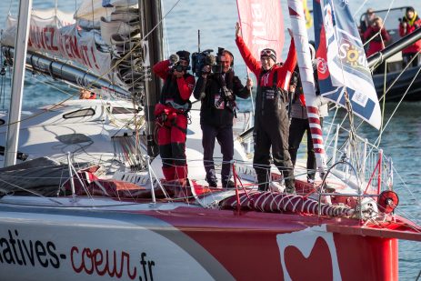 Tanguy avait à coeur, en quittant le ponton des Sables d’Olonne, de faire plaisir à tous ceux, proches, partenaires, équipe, qui l’accompagnent dans ses aventures au quotidien. Et il ne nous a pas déçus. Ce départ magnifique, en tête de flotte, et cette traversée du Golfe de Gascogne au contact des meilleurs, est son petit cadeau de départ. Merci !