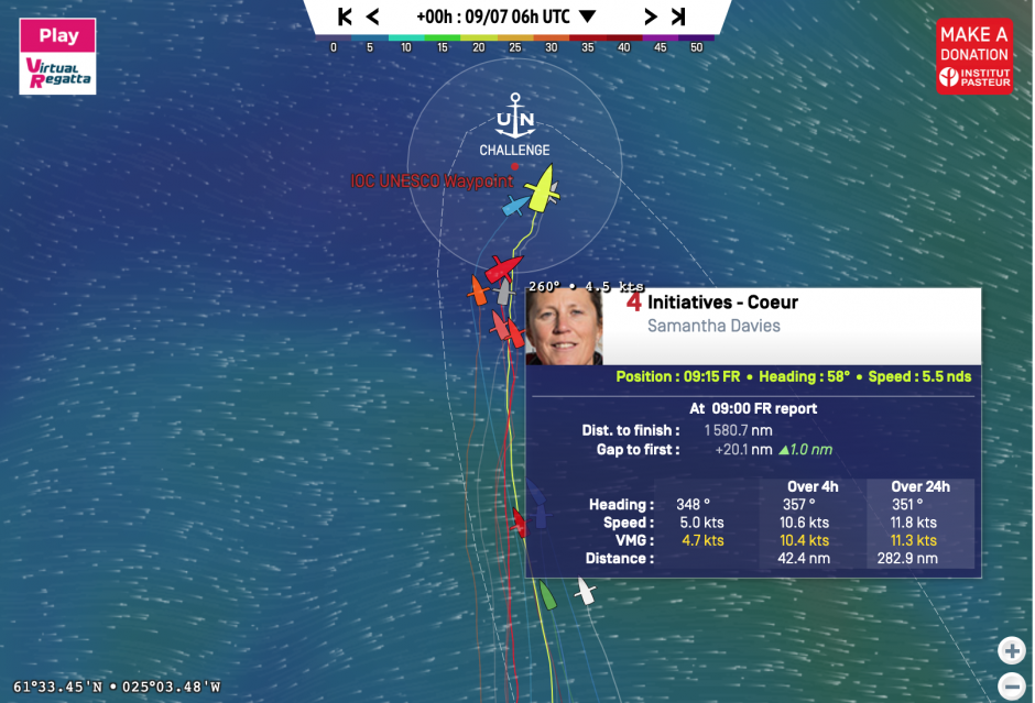 C’est une journée stressante qui nous attend à l’approche de la marque de parcours islandaise. Alors que Sam se maintient à une magnifique 4ème place, accroissant même hier après-midi et dans la nuit son avance sur ses poursuivants immédiats, elle est entrée dans la zone de vent faible avec laquelle elle va devoir composer pendant tout cet épisode arctique.